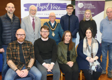 Causeway Coast and Glens Borough Council recently hosted the finale of its Good Relations project, Pupil Voice, at Ulster University’s Diamond Hall in Coleraine on 26th February. The event was facilitated by Mark Carruthers and Peter Osbourne and brought together Elected Members and secondary pupils from 10 post-primary schools across Causeway Coast and Glens.
