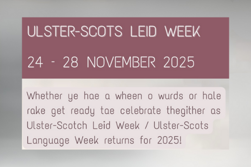 Coordinated by the Ulster Scots Agency, ‘Ulster Scotch Leid Week’ aims to promote greater awareness of the Ulster Scots language and celebrate the contribution which the Ulster Scots language makes to our local area and communities.