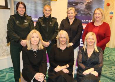 Photo from a training day on Ending Violence Against Women and Girls in Causeway Coast and Glens. Speakers include Kates Coates, Interim CEO at Causeway and Mid Ulster Women’s Aid; Neighbourhood Police Team Sergeant Wendy McConnell; Chief Inspector Clare Willis and Michelle Major from the Sunshine Project.