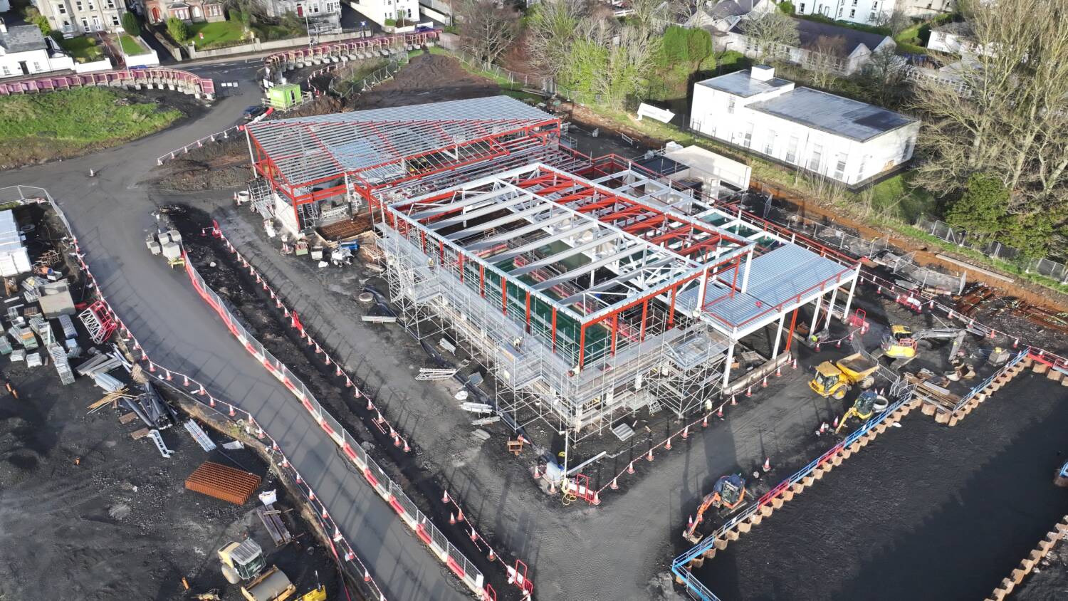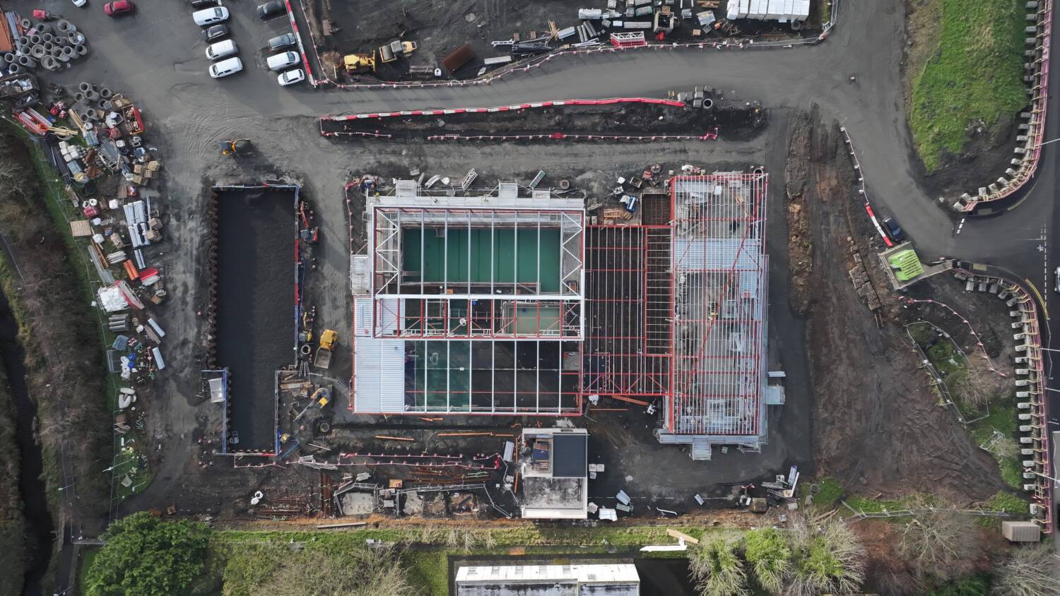 As the year has progressed the Swimming Pool tank has been excavated and constructed. The Leisure Centre Steelwork was completed in December which allows for the commencement of internal and external block work and roofing, while wider site works associated with pitch perimeter walking paths and drainage continue.