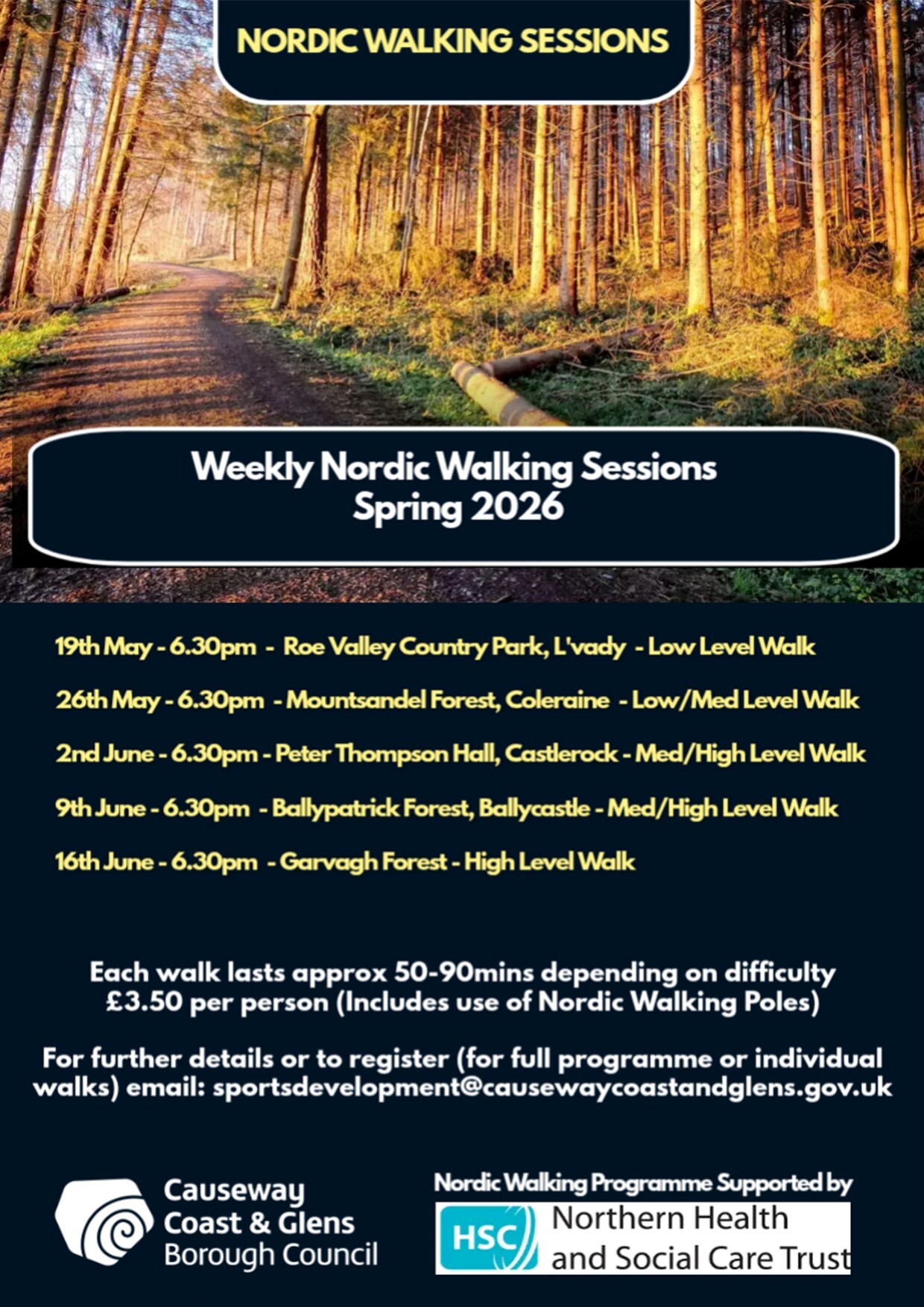 To register for individual walks or the full programme Nordic Walking Registration